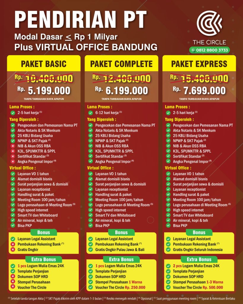 Pembuatan PT termurah se Bandung Raya semakin dicari oleh pelaku usaha yang ingin mengembangkan bisnisnya secara legal tanpa menguras anggaran. Memiliki badan hukum seperti Perseroan Terbatas (PT) sangat penting karena memberi perlindungan hukum, meningkatkan kredibilitas, serta mempermudah akses pendanaan. Namun, masih banyak yang menunda karena menganggap prosesnya rumit dan mahal. Di sinilah pentingnya layanan legal profesional seperti yang disediakan oleh The Circle Office.