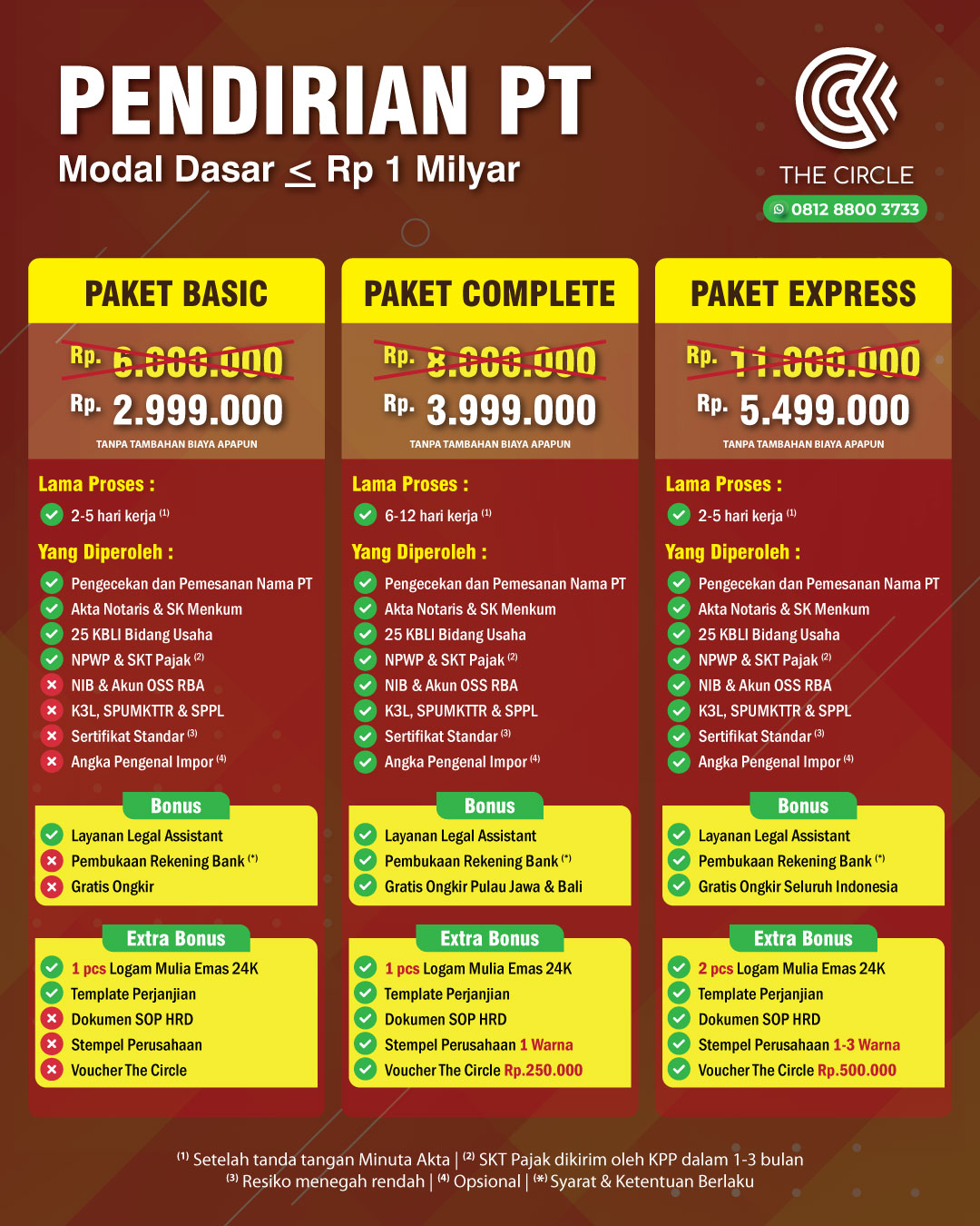 The Circle Office menawarkan tiga pilihan paket pendirian PT sesuai kebutuhan Anda: